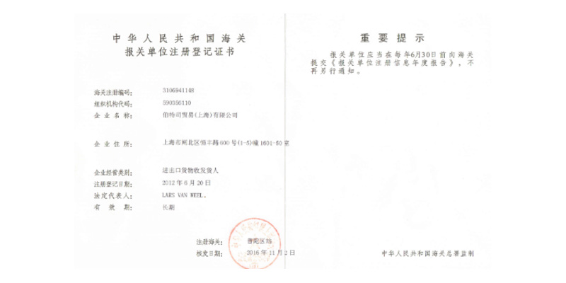 Import and export registration certificate